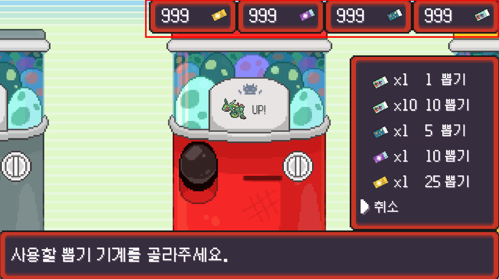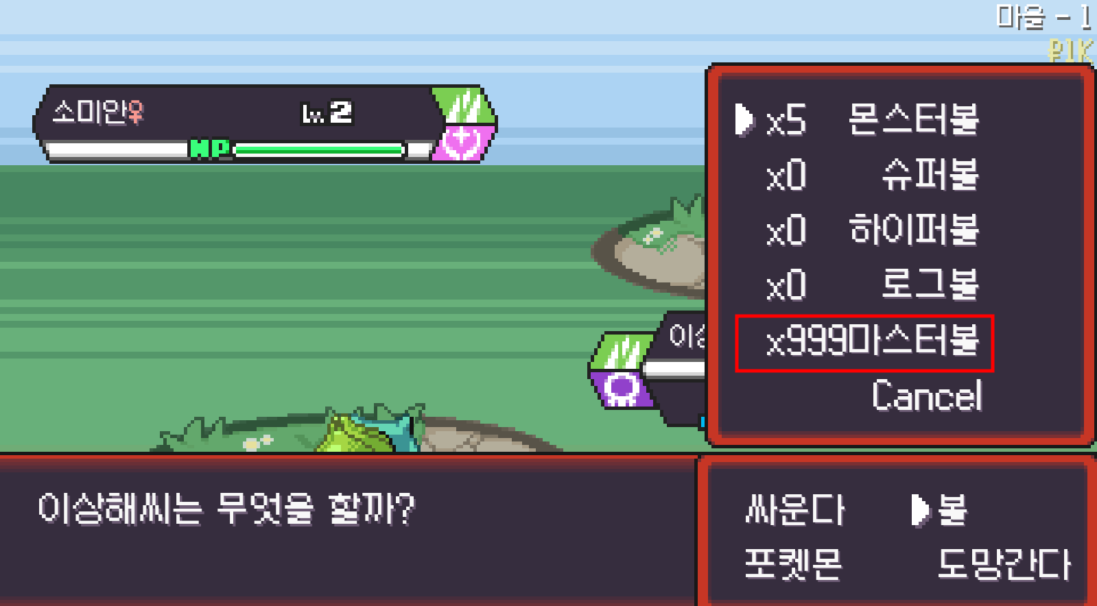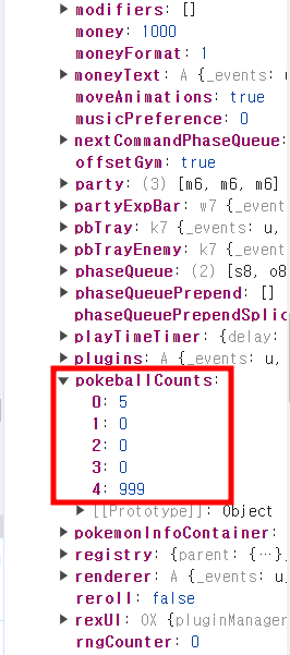 알뽑기 창에서 나와 게임화면에 돌아온 뒤 볼 갯수를 확인하면 마스터볼 갯수가 999개로 변경되있다.
