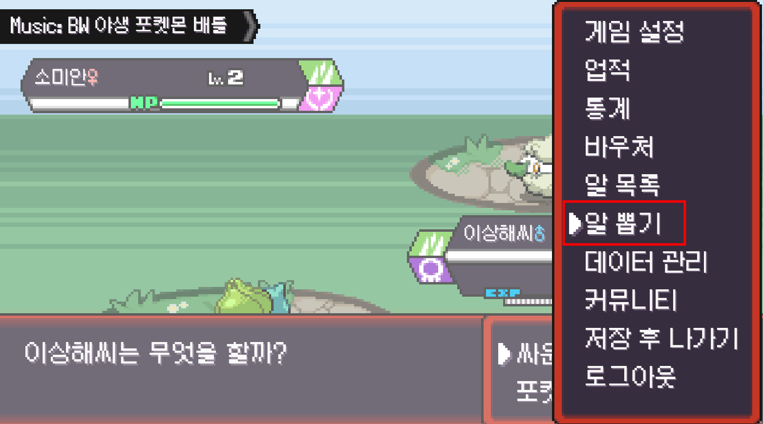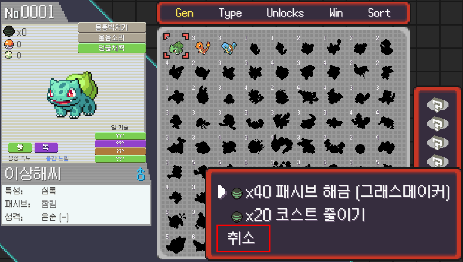 다시 재접속해 확인하면 이상해씨의 모든 기능이 해금되어있다.