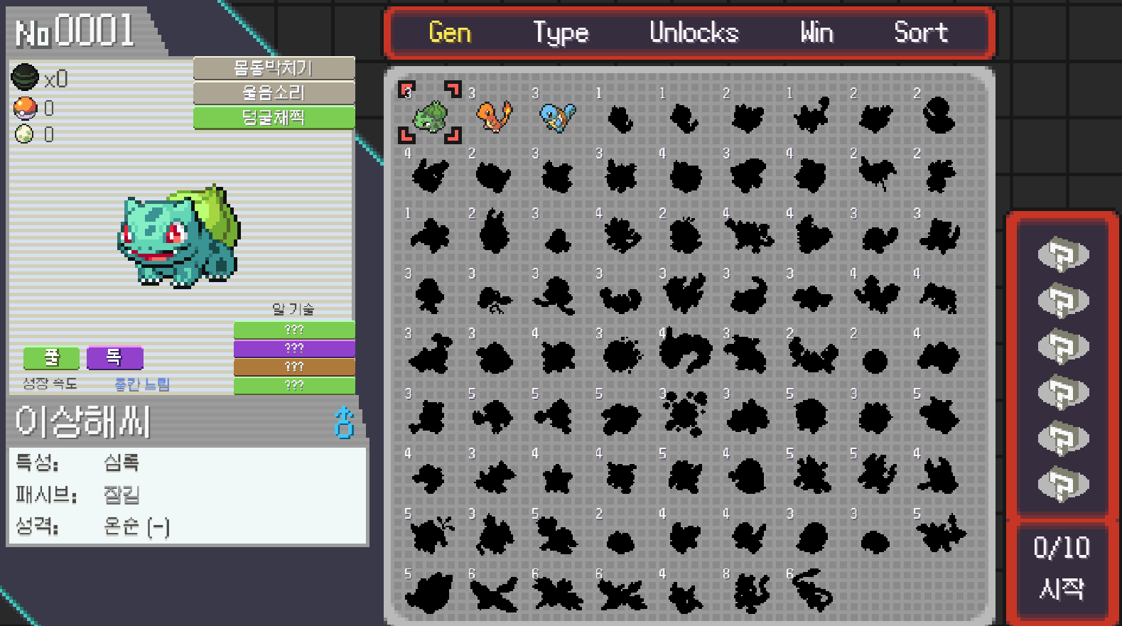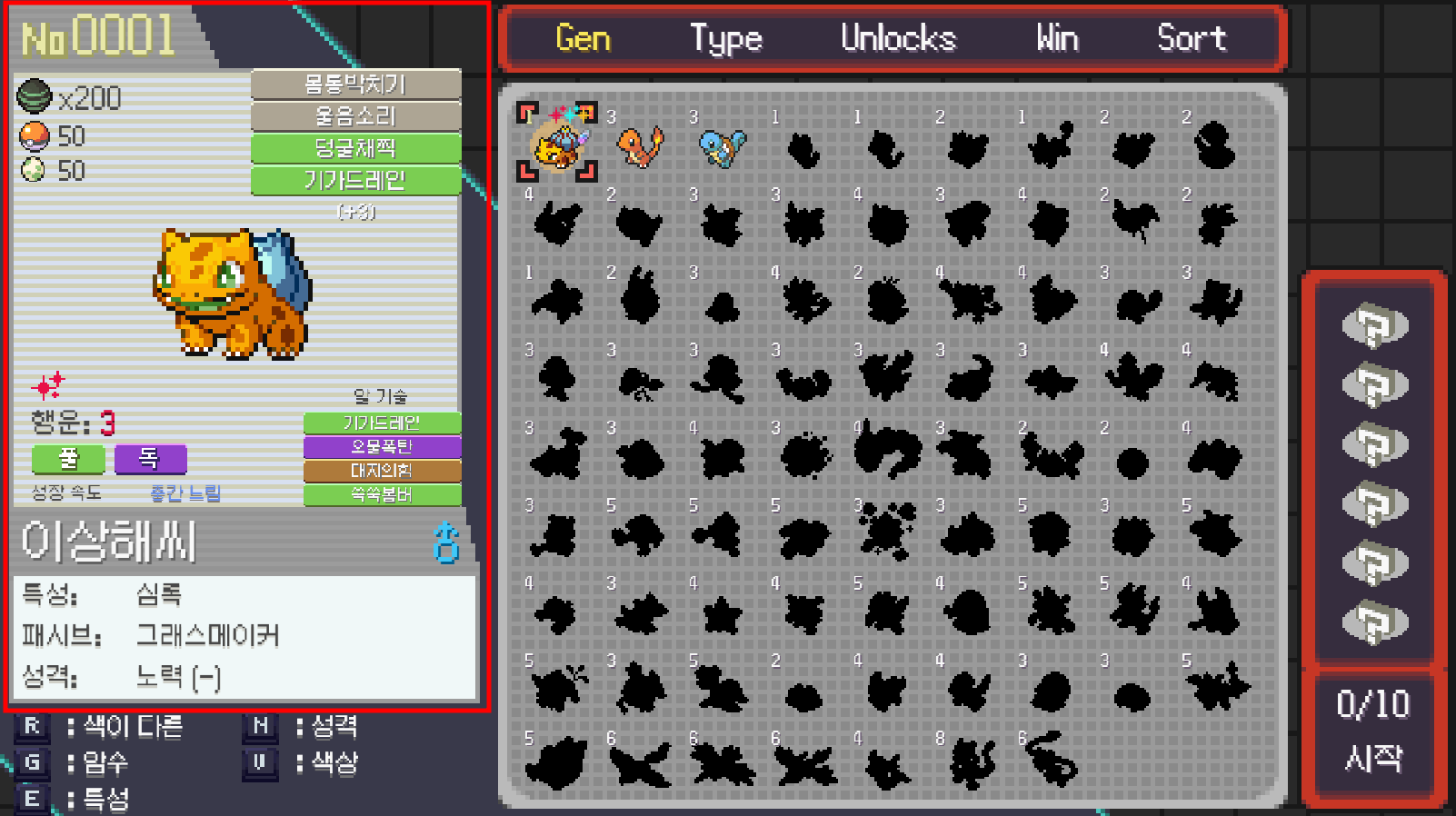대상 게임 : 포케로그(https://pokerogue.net/)라는 로그라이크 포켓몬 게임
