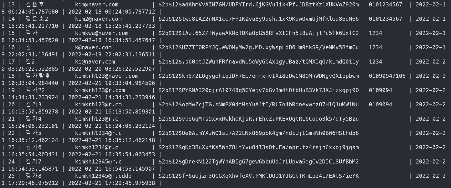 -> bcrypt 인자는 bytes로 입력을 받는다.bcrypt.gensalt()