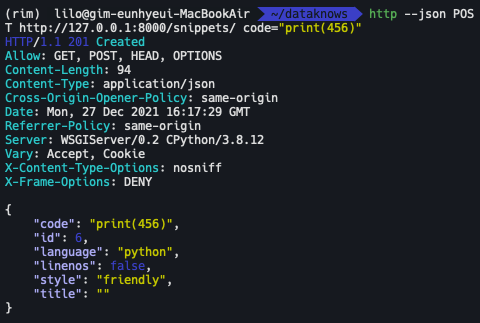 Django REST framework 튜토리얼 #1