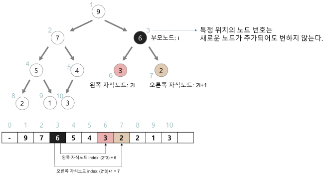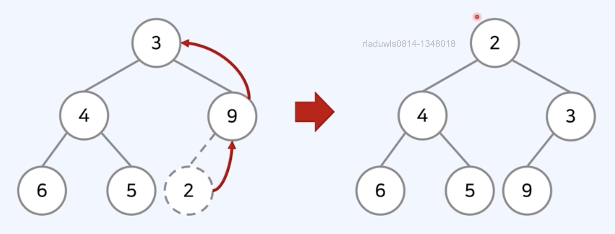 heapify: 힙에서 특정 노드와 그 하위 노드를 정렬하여 힙 속성을 유지하도록 만드는 과정