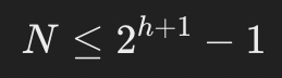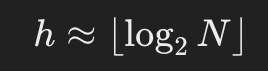 높이(h)는 노드 수(N)에 대해 다음과 같이 계산됨