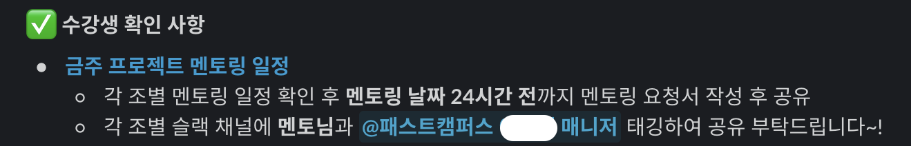 이번 글에선 프로젝트 중 진행된 멘토링에 관해 이야기해볼게요!