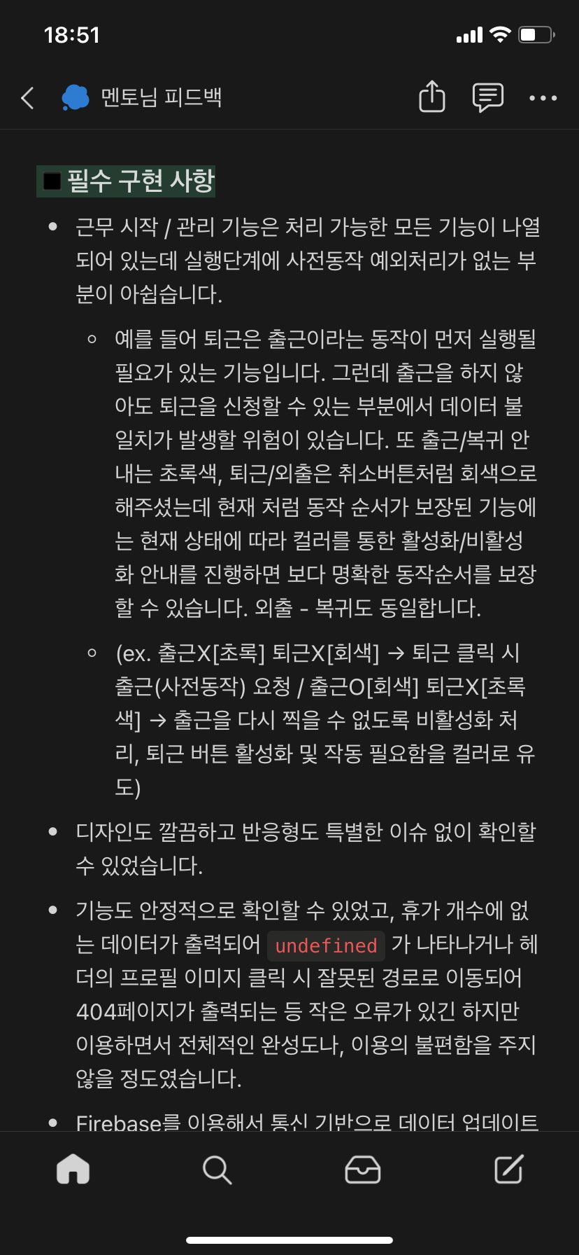 저희 멘토님은 관련 레퍼런스, 사이트를 첨부하며 정말 정성스럽게 답변해주셨어요. 프로젝트를 하며 궁금한 것을 정리해두었다가 질문하며 인사이트를 얻는데 큰 도움이 됐습니다 👍👍