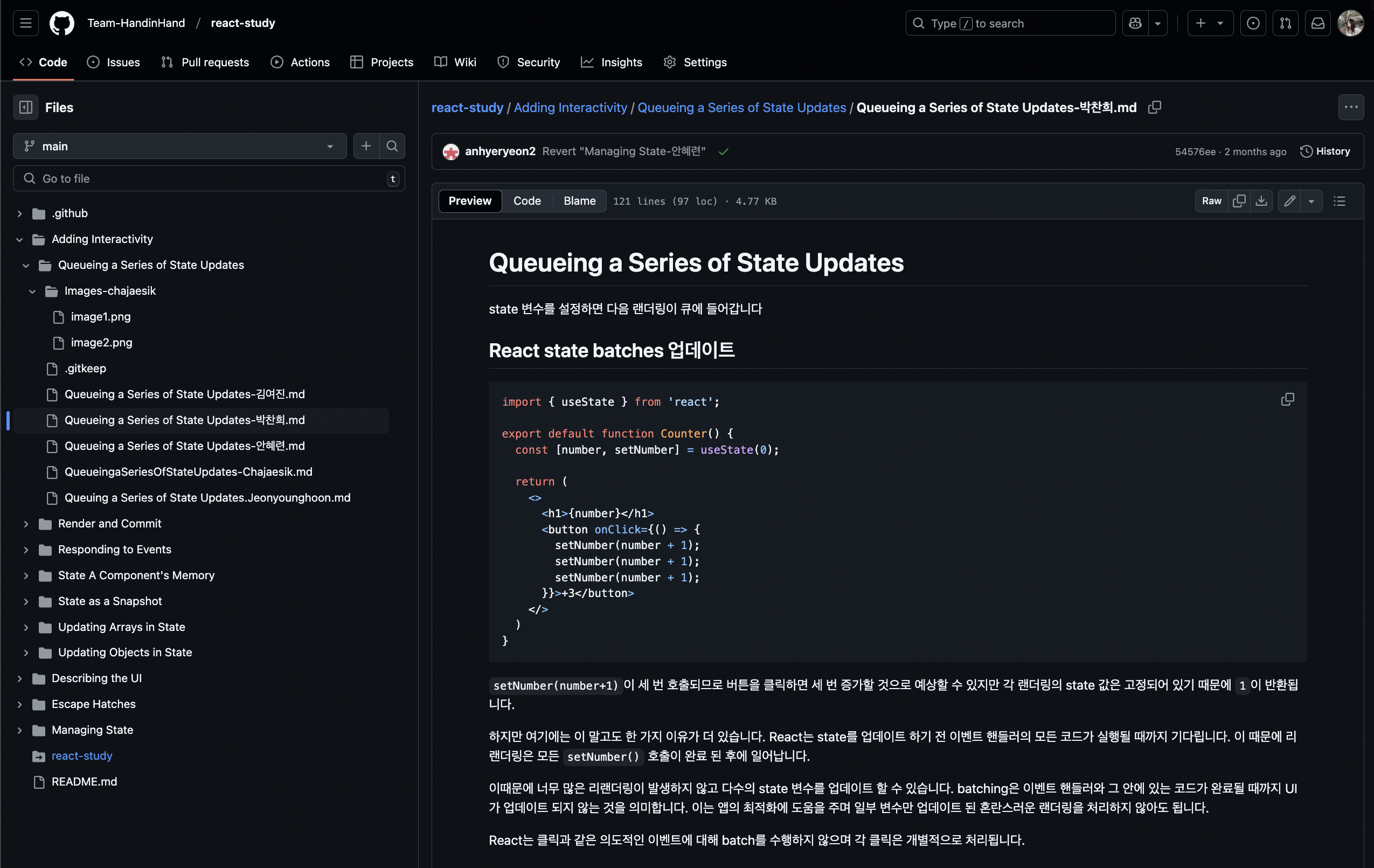모두 여기에 공감했고 먼저 4주간 react 공식문서를 읽으며 스터디를 했어요.