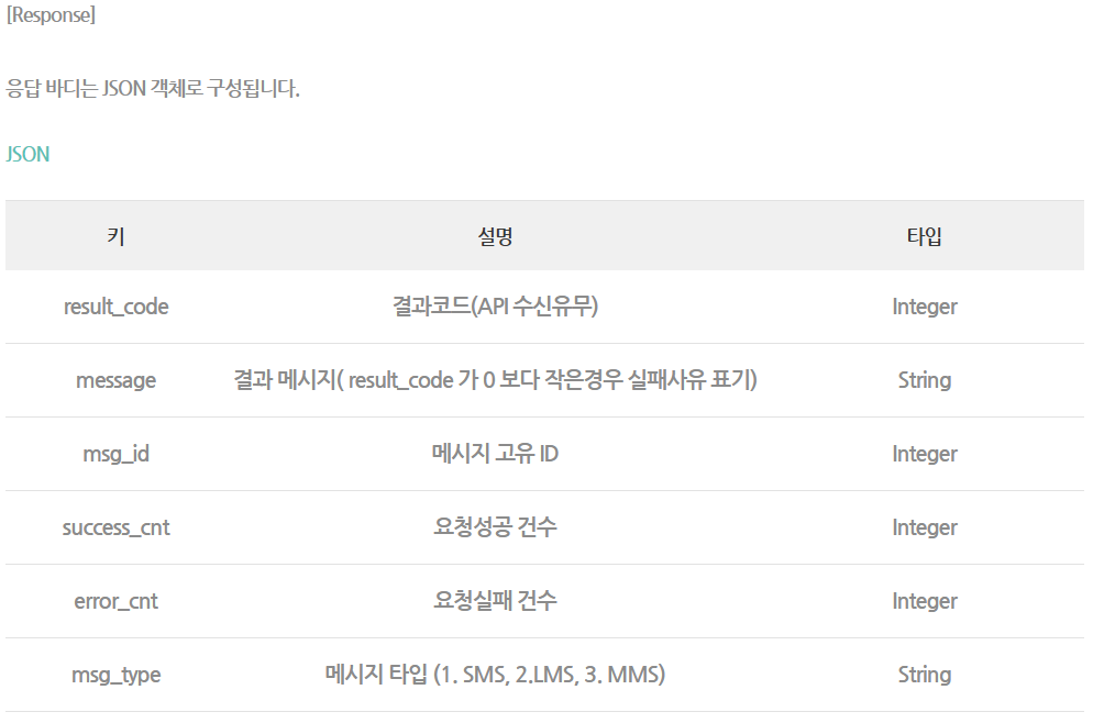 이번에 웹 발신 문자를 전송하기 위해서 이용한 서비스는 알리고 문자 서비스였다. 문자 서비스를 연동하는 과정도 처음이었기에 꽤나 겁을 먹고 시작했던 것과 다르게 친절한 API 명세를 확인할 수 있었다.