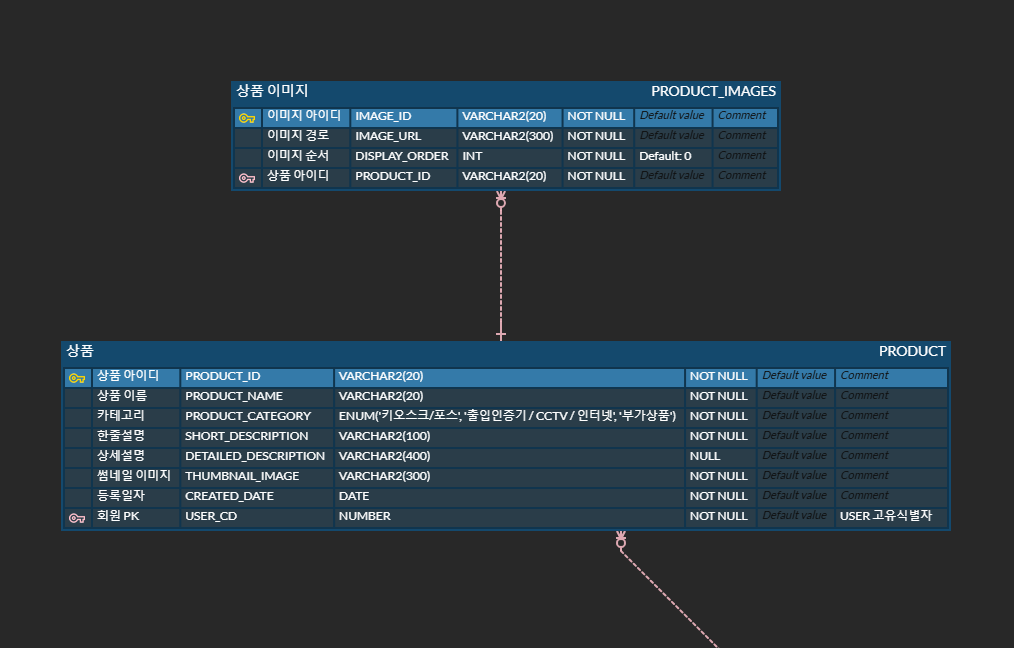 *이때 썸네일 이미지는 product테이블에 들어가야하고 상세보기 이미지는 productImages테이블에 들어가야한다. (erd사진 참고)