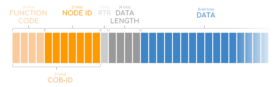 11비트 CAN ID는 COB-ID (통신 개체 식별자 )라고 하며 두 부분으로 나뉜다.
