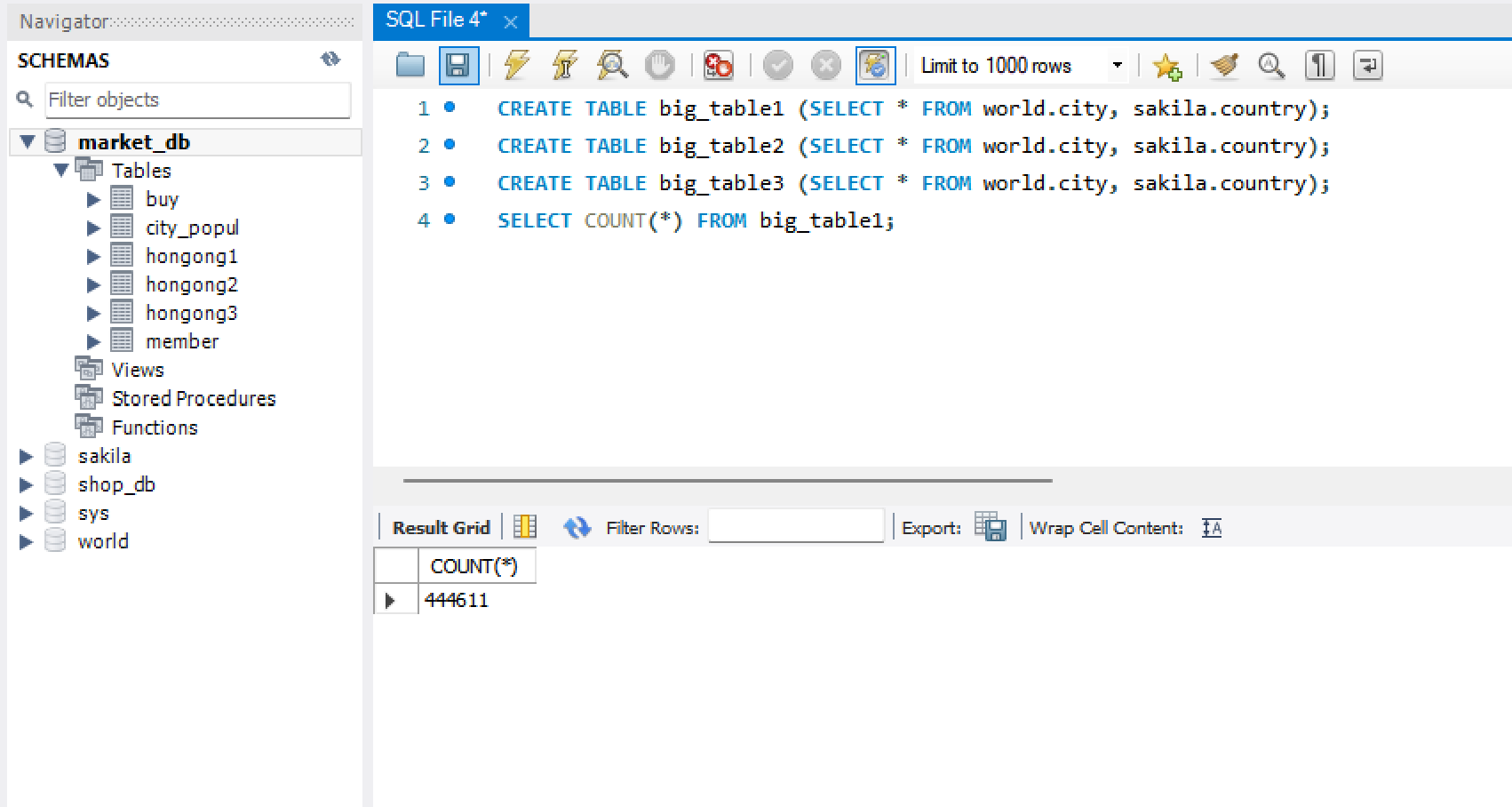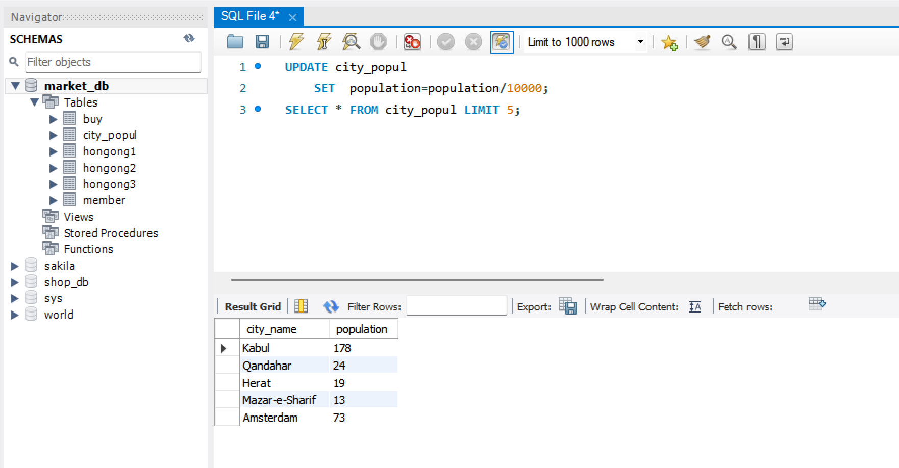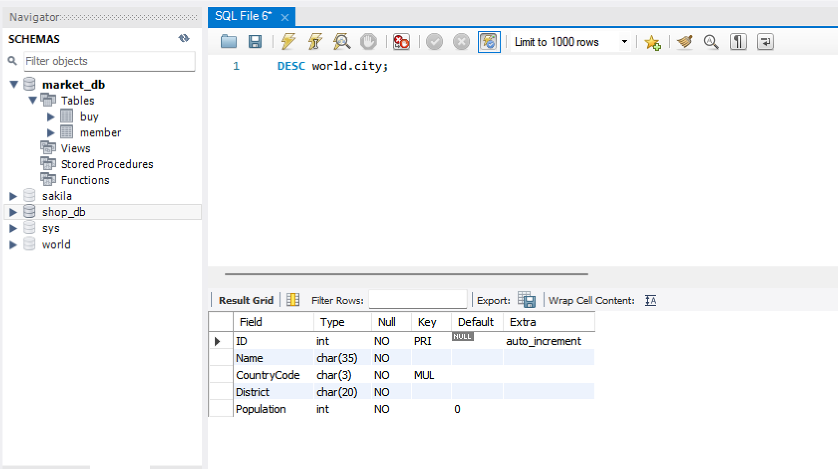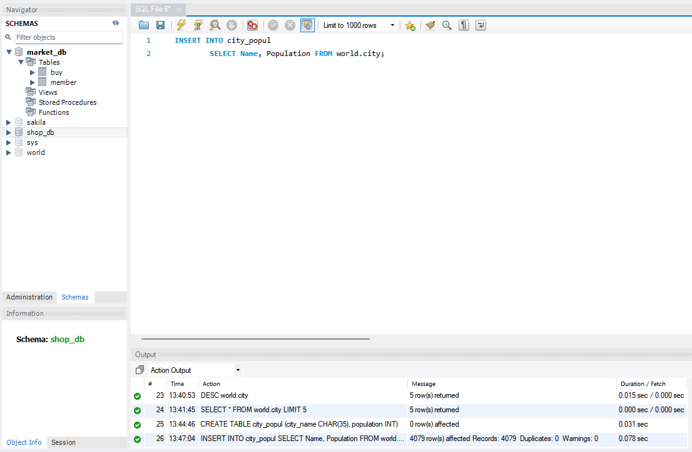 world.city 테이블의 내용을 city_popul 테이블에 입력함.