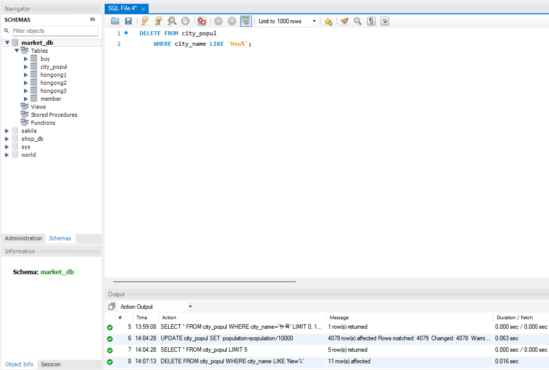 city_popul 테이블에서 'New'로 시작하는 도시 삭제하기