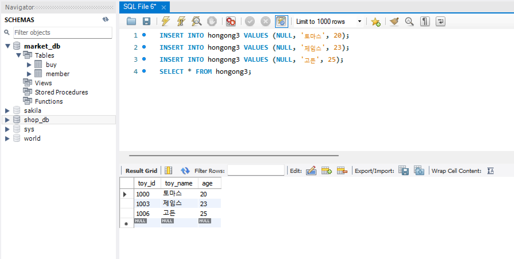 1) 자동 증가하는 부분은 NULL 값으로 채워 놓으면 됨.