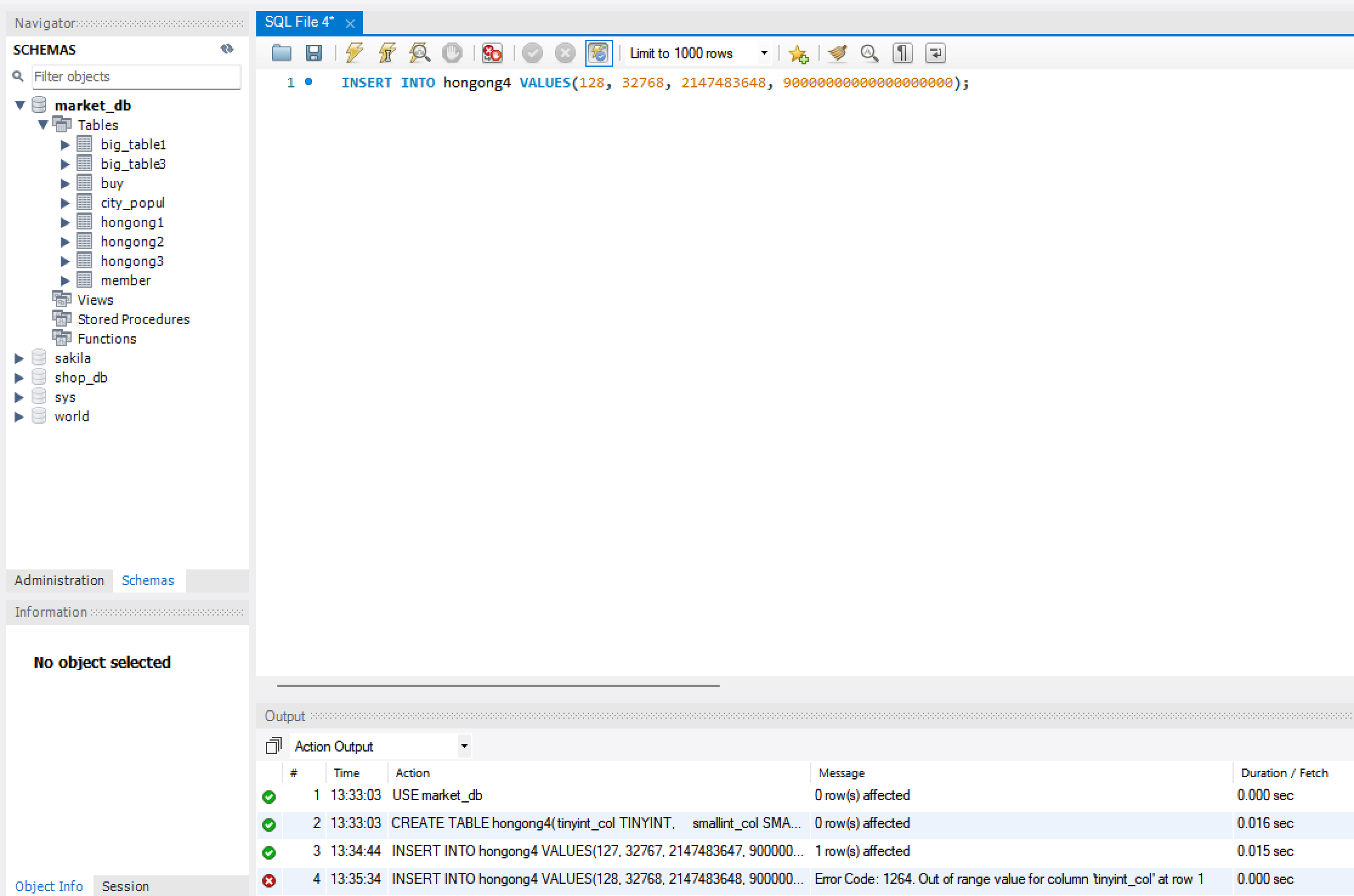1) 정수형에는 TINYINT, SMALLINT, INT, BIGINT가 있음.