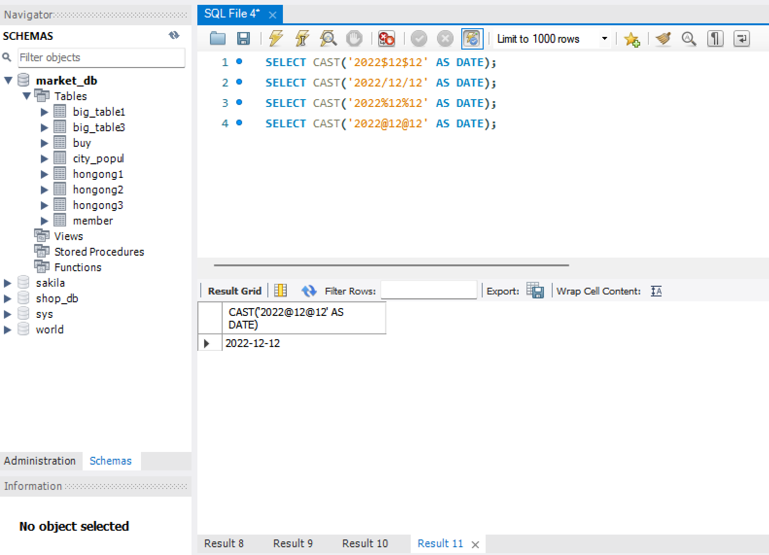회원 테이블의 문자형 확인하기
