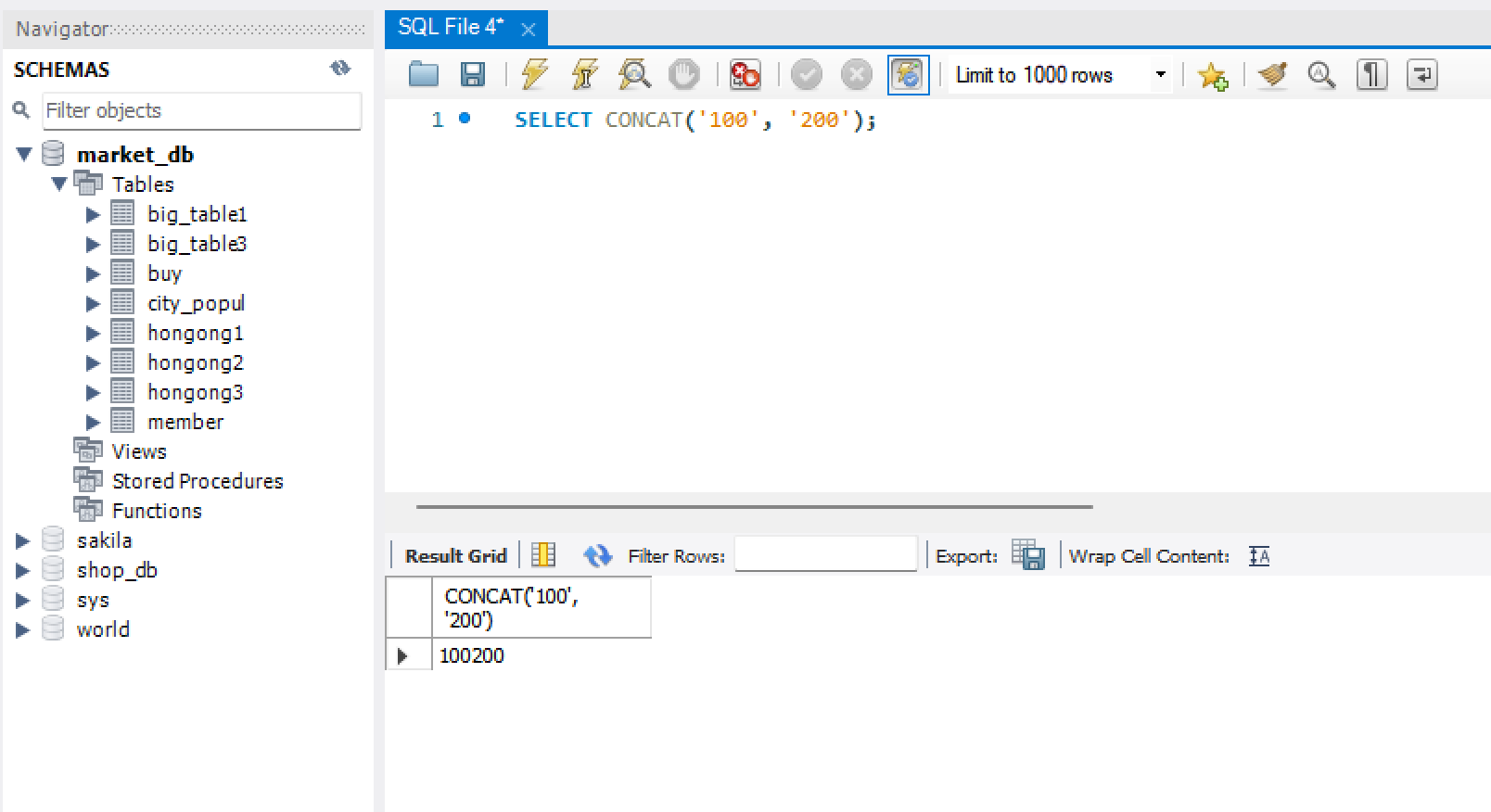 숫자와 문자를 CONCAT() 함수로 연결하기