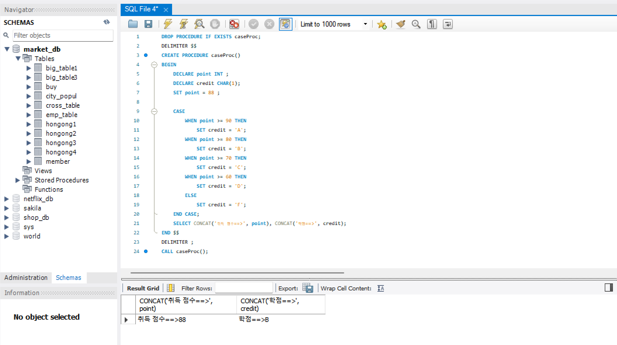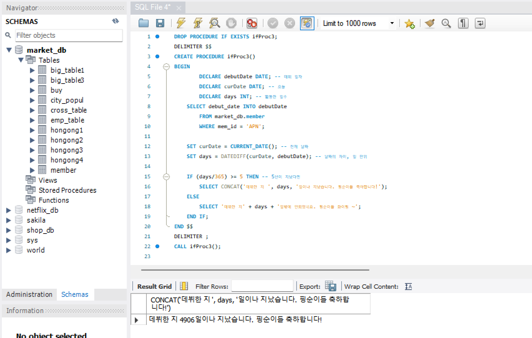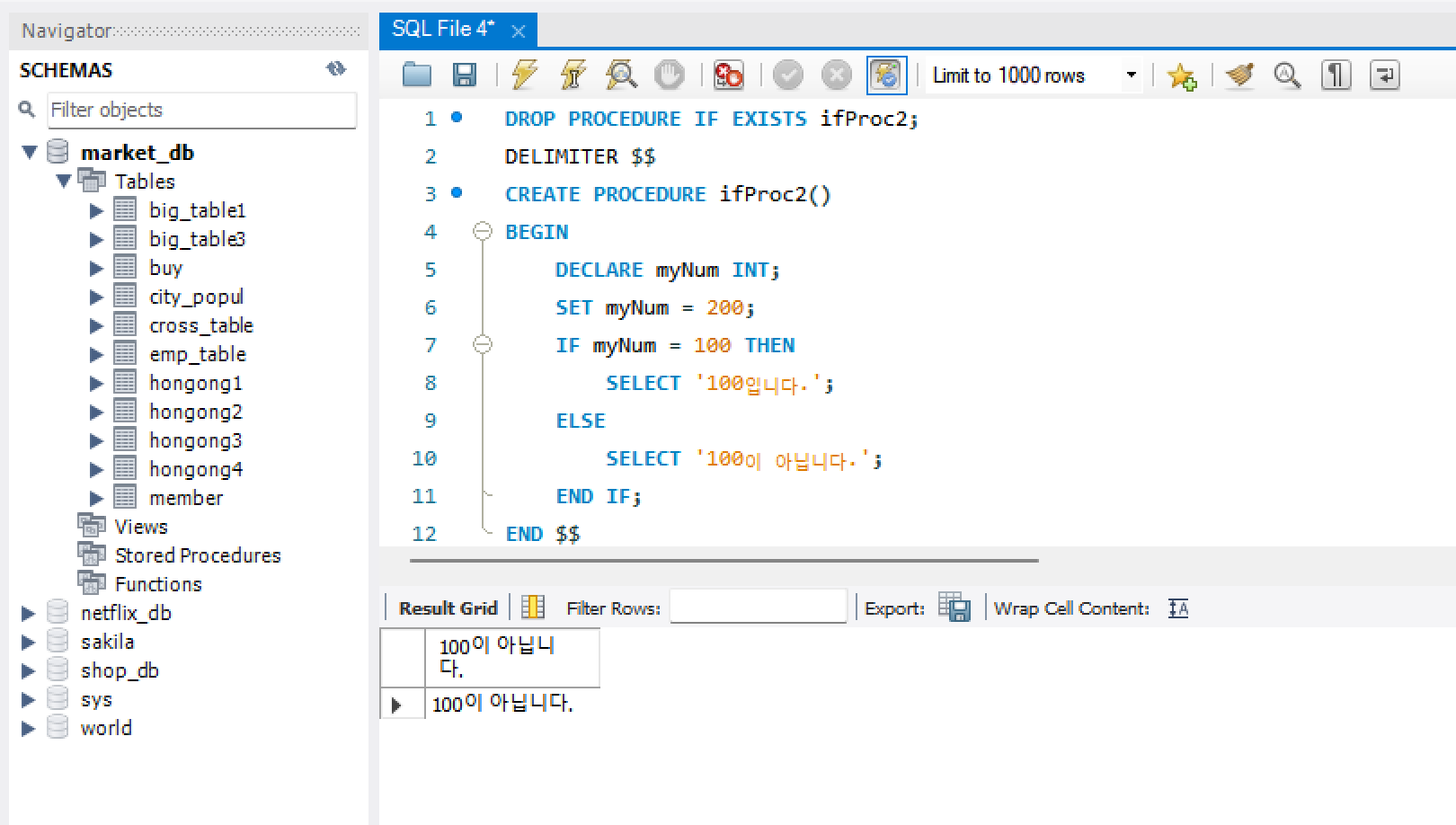 3) 스토어드 프로시저의 이름을 ifProc1()로 지정함.