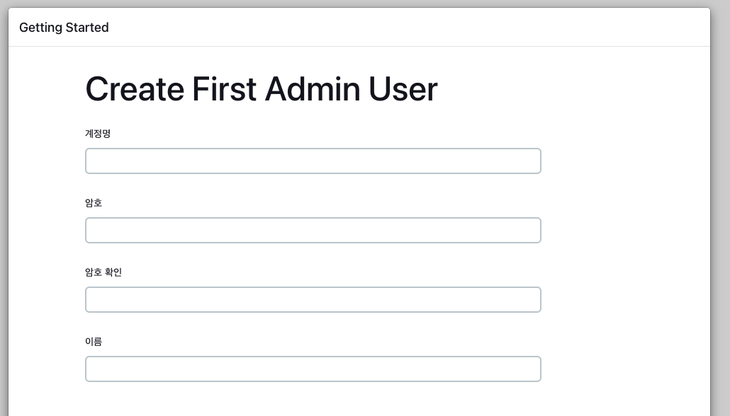 다음으로 어드민 계정을 생성합니다. 필요한 정보를 입력합니다.