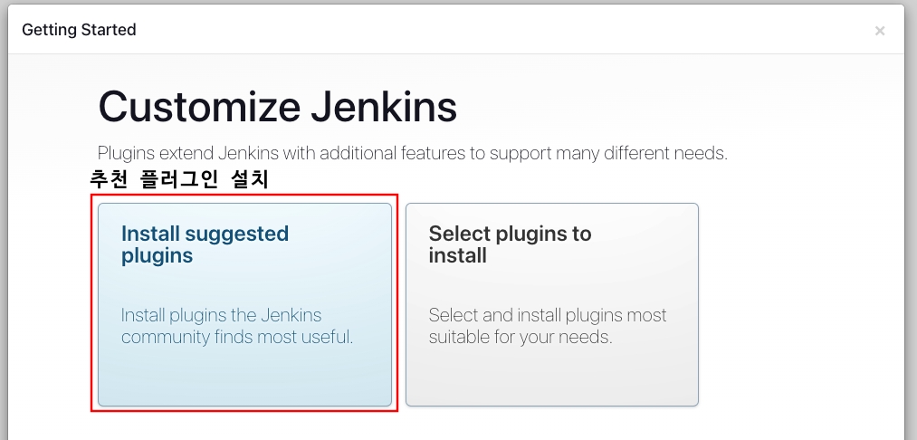 이후 젠킨스에서 추천하는 플러그인을 설치합니다.