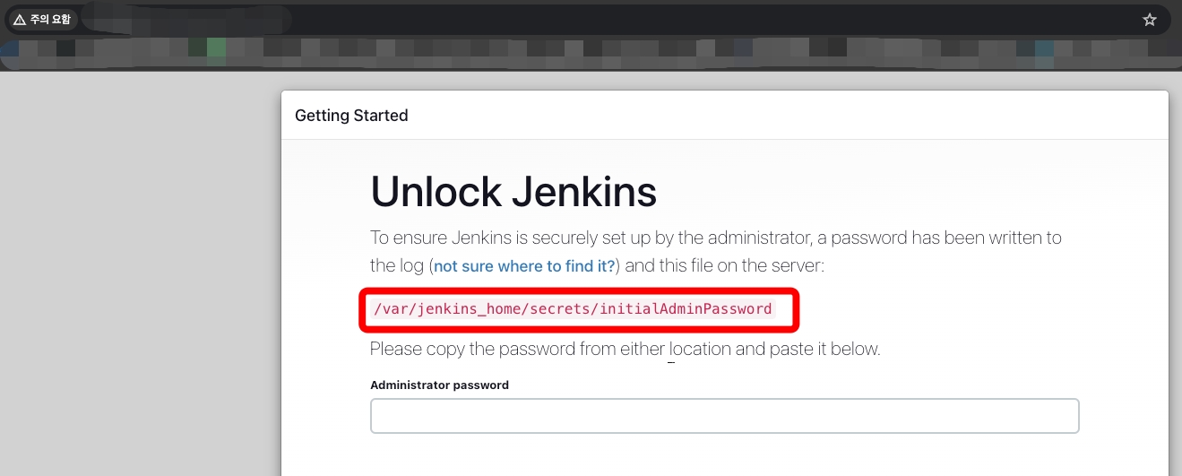 cat {docker_volume 위치}/secrets/initialAdminPassword