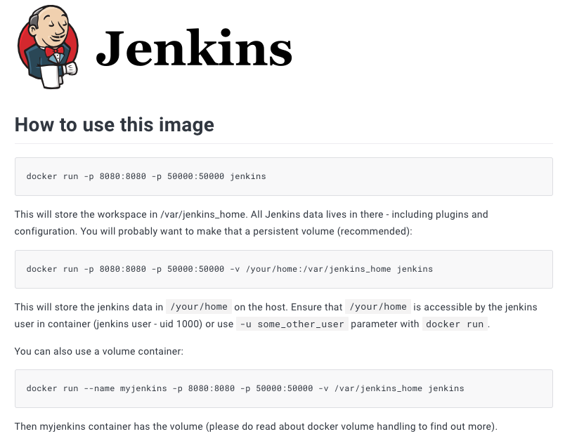 저는 젠킨스를 새로 실행해도 데이터가 사라지지 않도록 볼륨을 사용할 것 입니다.