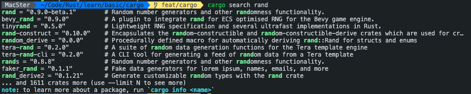 MacSter ξ° ~/Code/Rust/learn/basic ξ° ξ feat/cargo ξ° cargo new cargo