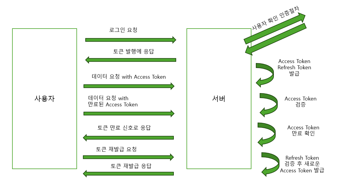 사용자는 토큰을 저장하고 추후 서버에 재요청시 발급받은 Access Token 을 서버에 전달하고 서버는 이를 검증하고 응답한다