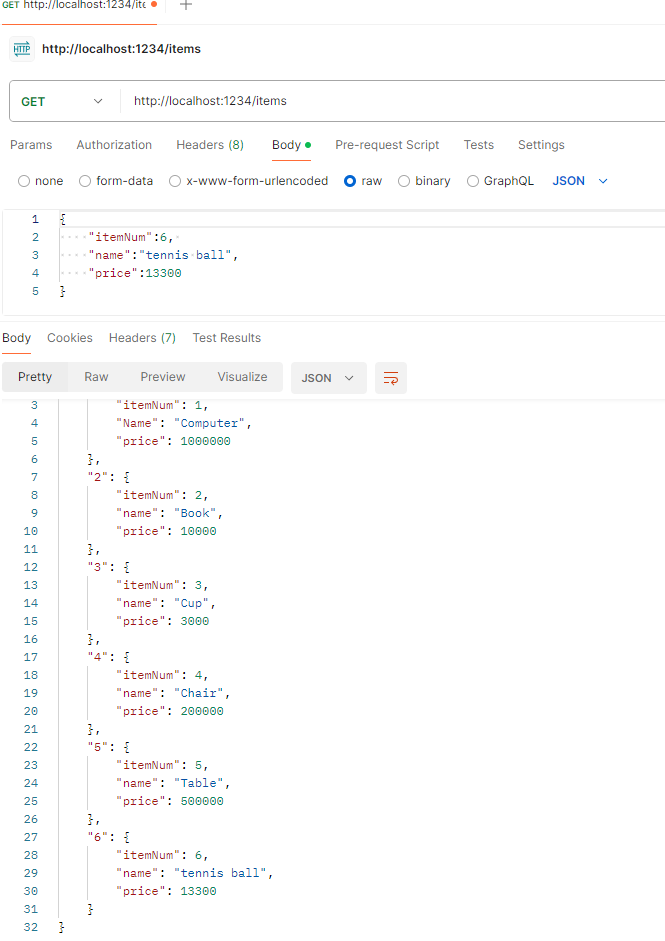 3번 아이템 개별 조회 (localhost:1234/items/3)