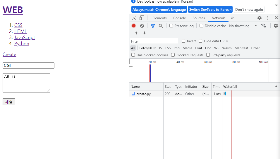 아래가 Post 방식을 사용하여 제출 버튼을 눌렀을 때 일어나는 현상이다.