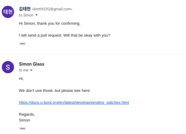Contribution을 하고 싶거나 문제가 발견되었을 경우 해당 메일 리스트에 메일을 남기라는 말이었다. 그래서 그냥 무작정 메일을 보냈는데, 나중에 안 사실이지만 Contribution을 위한 Instruction을 죄다 무시한 채 보냈었다. 내 메일을 받고 응답한 Maintainer은 Simon이라는 사람이었는데, 나같은 초보 개발자도 친절하게 응대해줘 참 감사했다.
