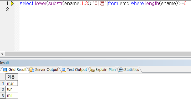 select lower(substr(ename,1,3)) "이름" from emp where length(ename)>=6