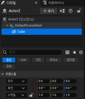 (예) Actor를 부모로 하면 Actor의 기능을 가진 새 블루프린트를 만듦