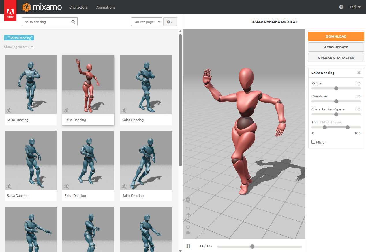 Bot이랑 프로젝트 캐릭터랑 본 맞추고 애니메이션 시퀀스로 임포트 하기