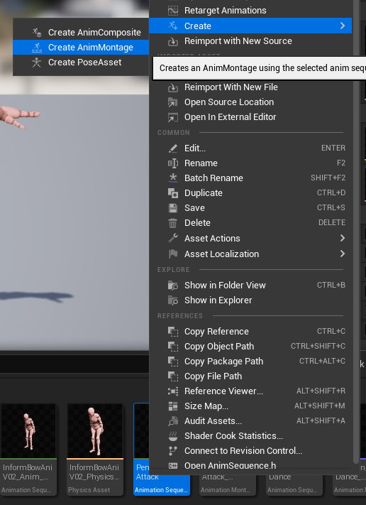 나중에 이펙트랑 사운드 추가할 것 같아서 시퀀스를 애님 몽타주로 만들기