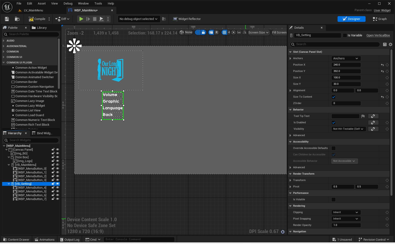 WBP_MainMenu의 메뉴 Vertical Box → Wrap with Common Animated Switcher