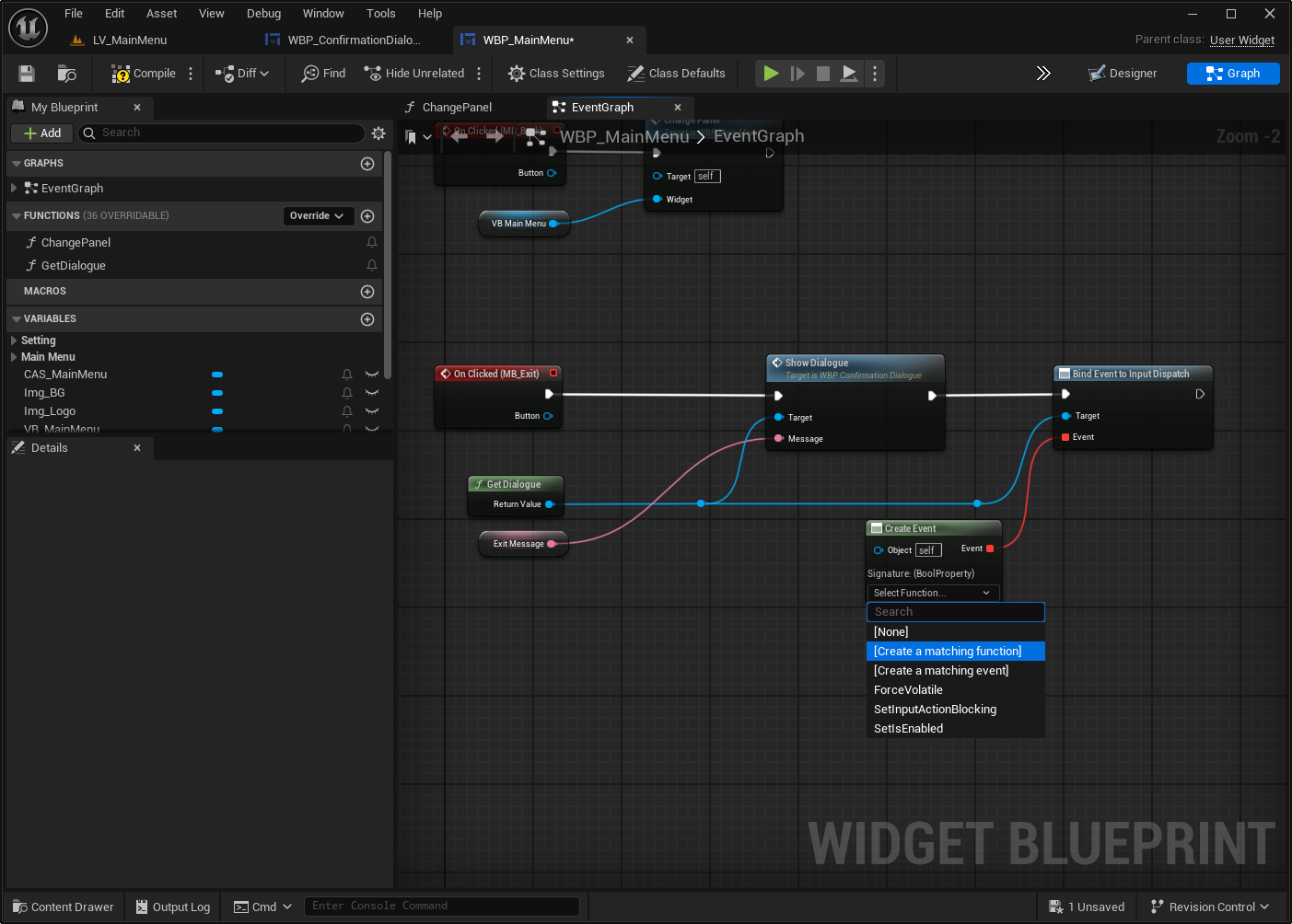 Exit 버튼 누르면 WBP_ConfirmationDialogue 화면 나오게 하기
