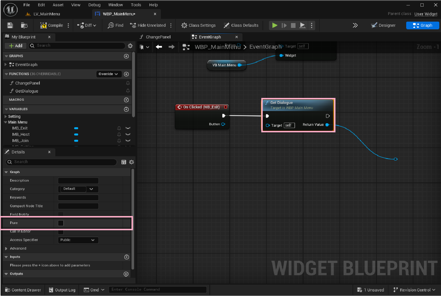 Unbind All Events from Input Dispatch 노드 추가(1) Exit 버튼 클릭