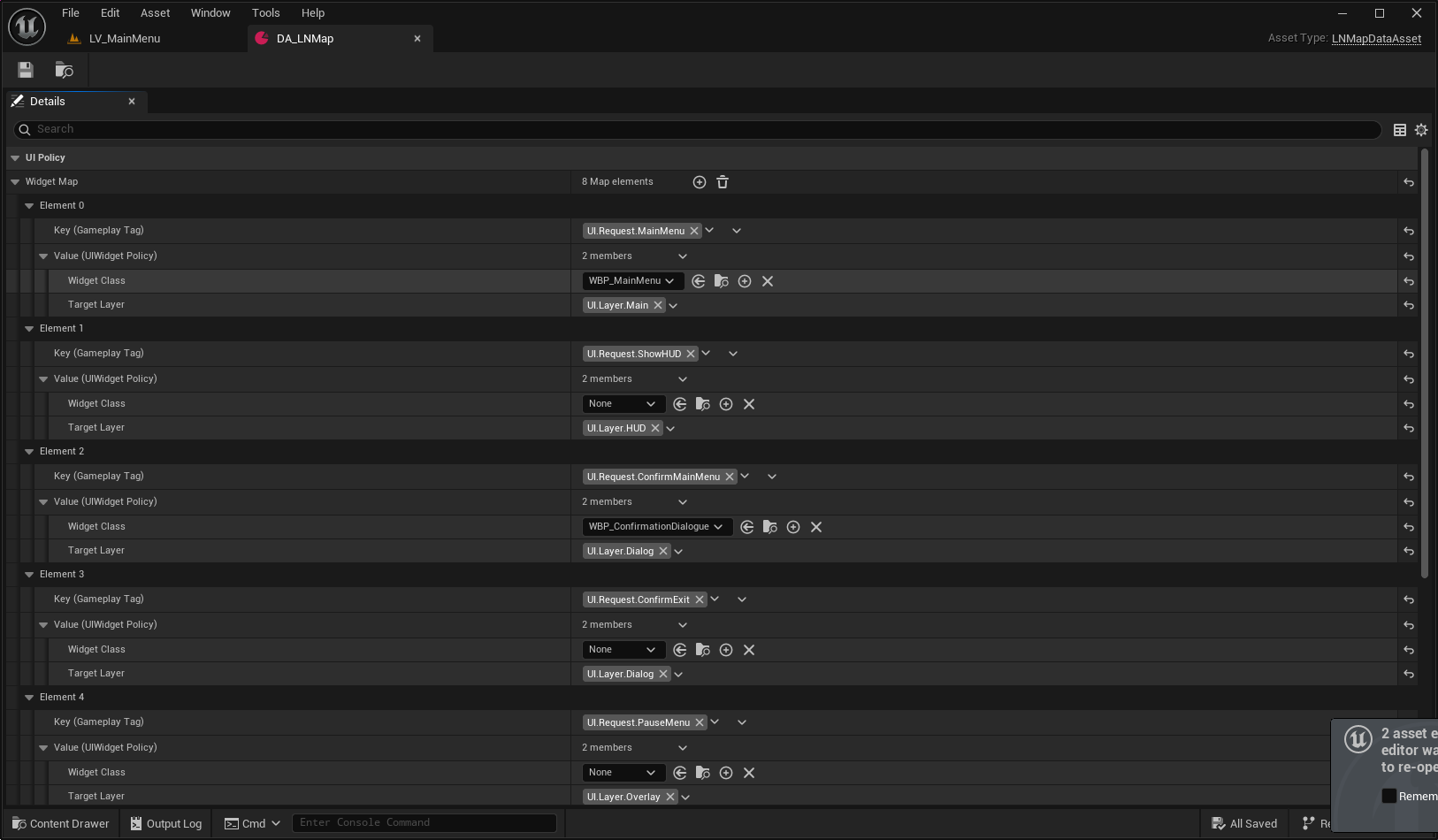 TMap<FGameplayTag, FUIWidgetPolicy> WidgetMap; 에 맞춰서 Request-Layer 짝 맞추기