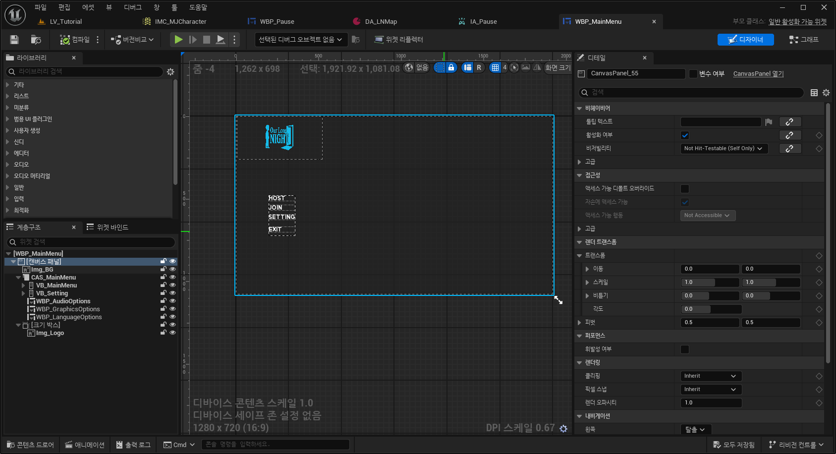 기존 MainMenu에서 썼던 WBP_Audio, WBP_Graphics 가져오기