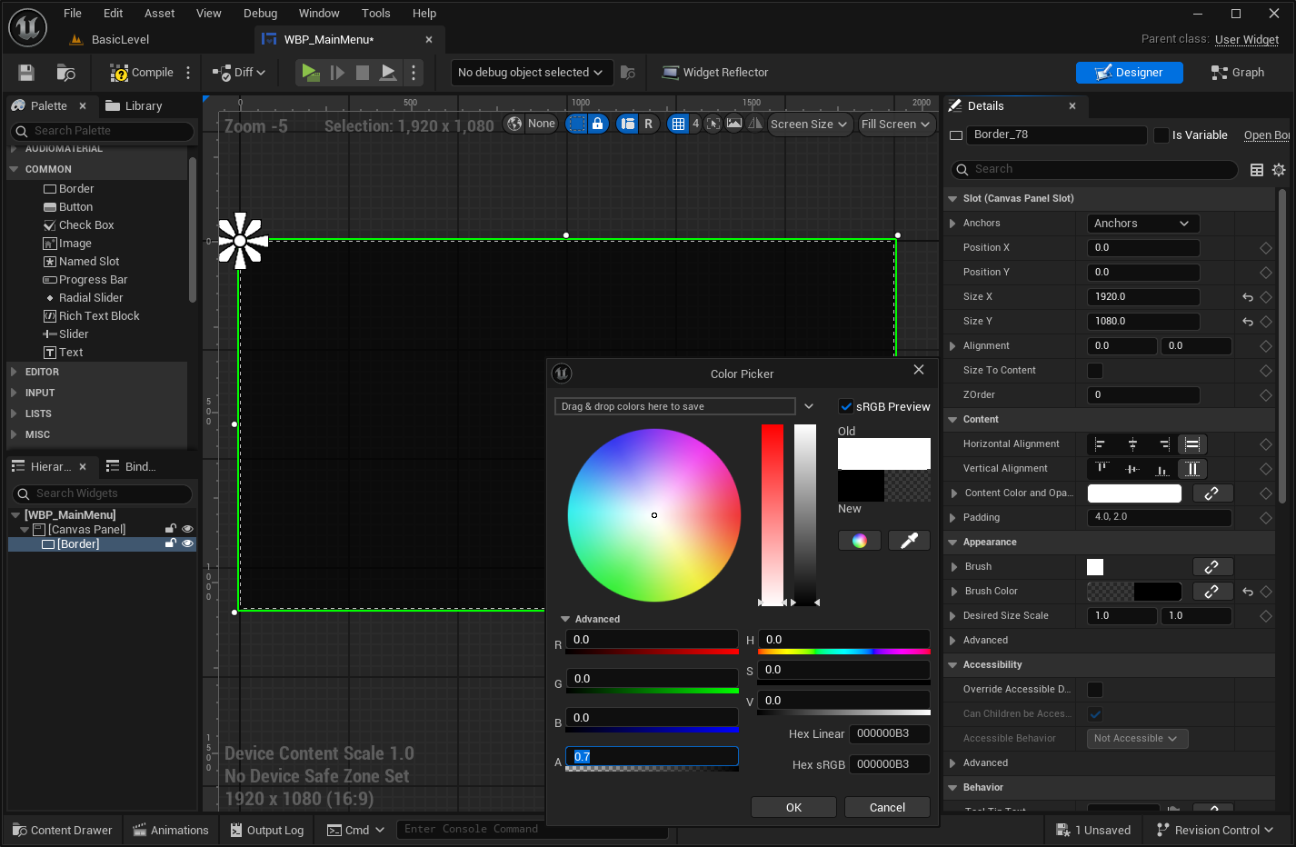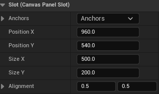 Position X / Y - 1920 * 1080 의 반값Alignment - 0.5로 하면 중앙에 정렬Size X / Y 조절