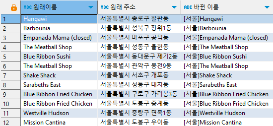 replace(restaurant_name, 'Blue', 'Pink') "바뀐 상점명"