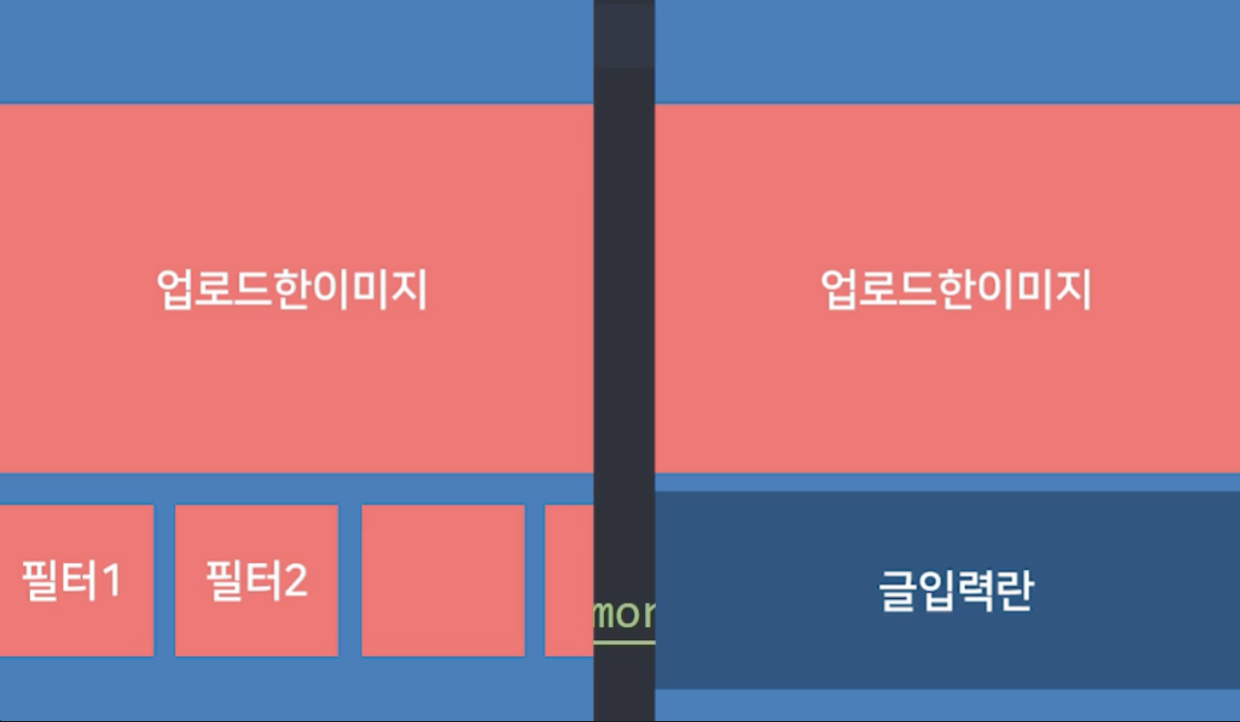 </style>크게 필터 선택화면, 글 작성화면으로 우아래로 나눔