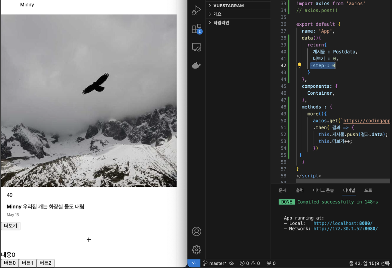 이제 버튼은 누르면 step의 데이터가 변하는걸 넣으면 된다