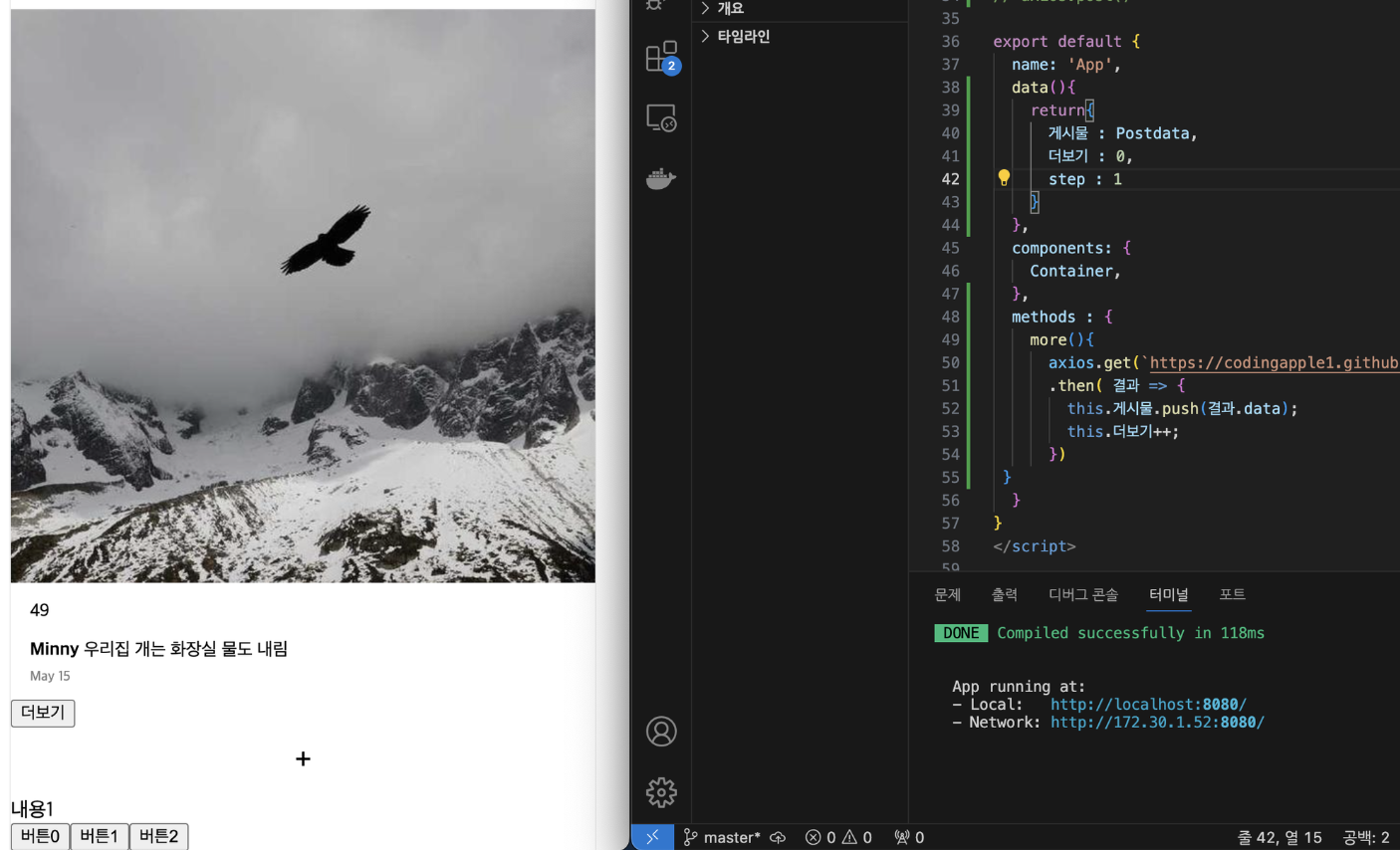 <Post :게시물="게시물[i]" v-for="(a, i) in 게시물" :key="i" />