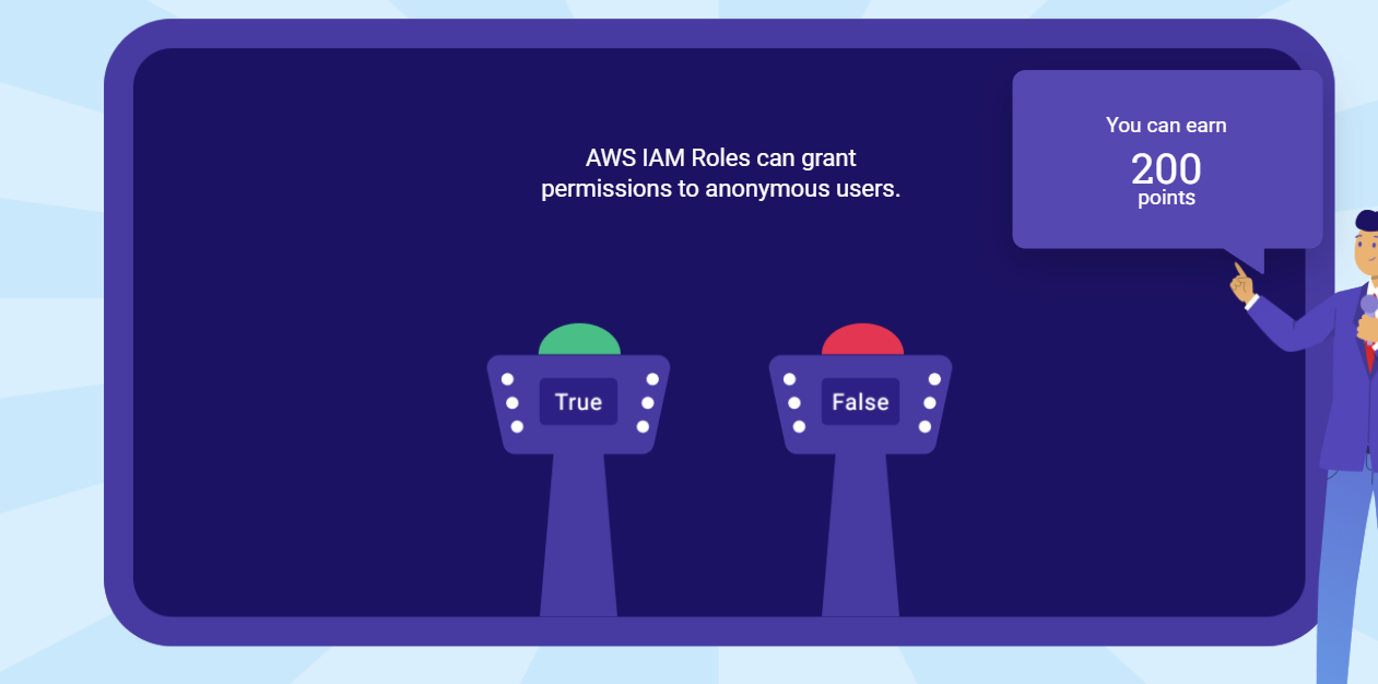 AWS IAM 역할은 특정 사용자, 그룹 또는 서비스에 권한을 부여하도록 설계되었으며, 익명 사용자에게 직접 권한을 부여하는 것은 보안상의 이유로 허용되지 않는다. 익명 사용자에게 권한을 부여하려면 AWS에서 제공하는 임시 자격 증명이나 퍼블릭 액세스 설정을 통해 제한된 권한을 제공해야한다.