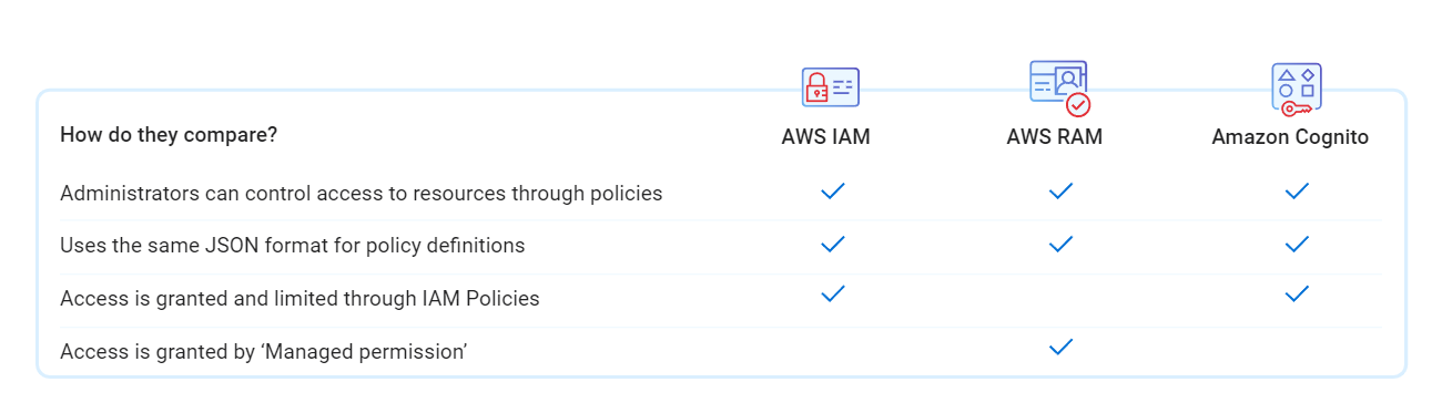 AWS는 조직 외부의 사용자에게 리소스를 공유하고 보안하는 여러 가지 방법을 지원한다. 제시된 방법 외에도 S3, RDS, SNS, SQS와 같은 서비스는 리소스 수준에서의 공유를 허용한다.