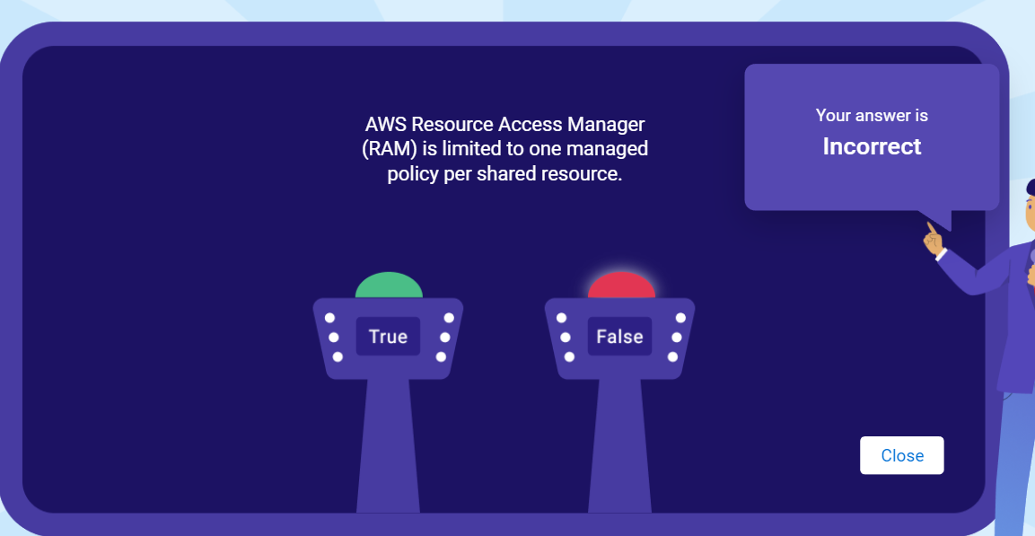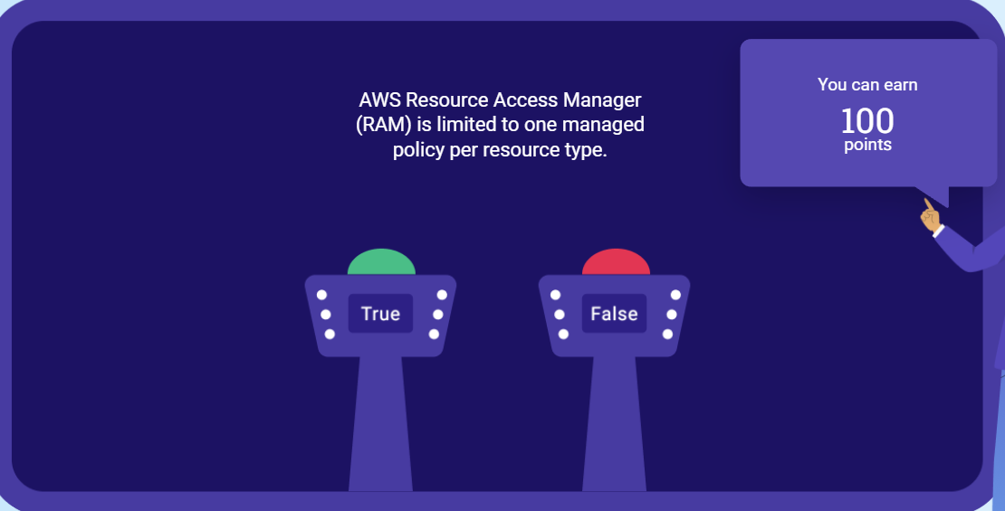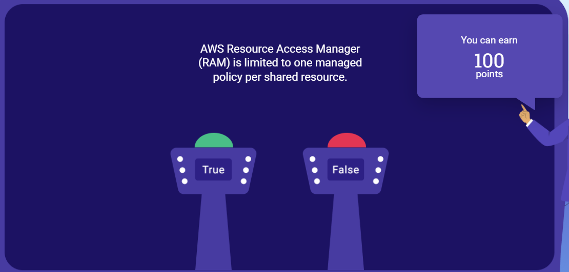 AWS Resource Access Manager (RAM)은 공유 리소스 당 하나의 관리 정책으로 제한되지 않는다.