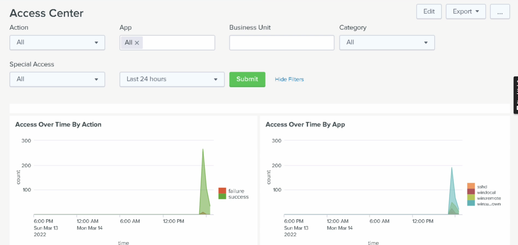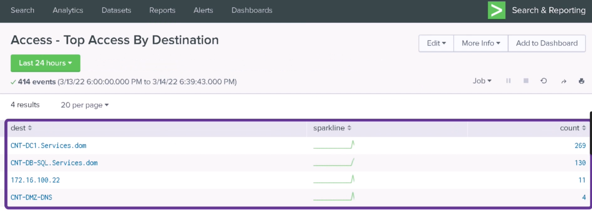 Splunk는 수많은 기본 제공 리포트 및 대시보드를 제공