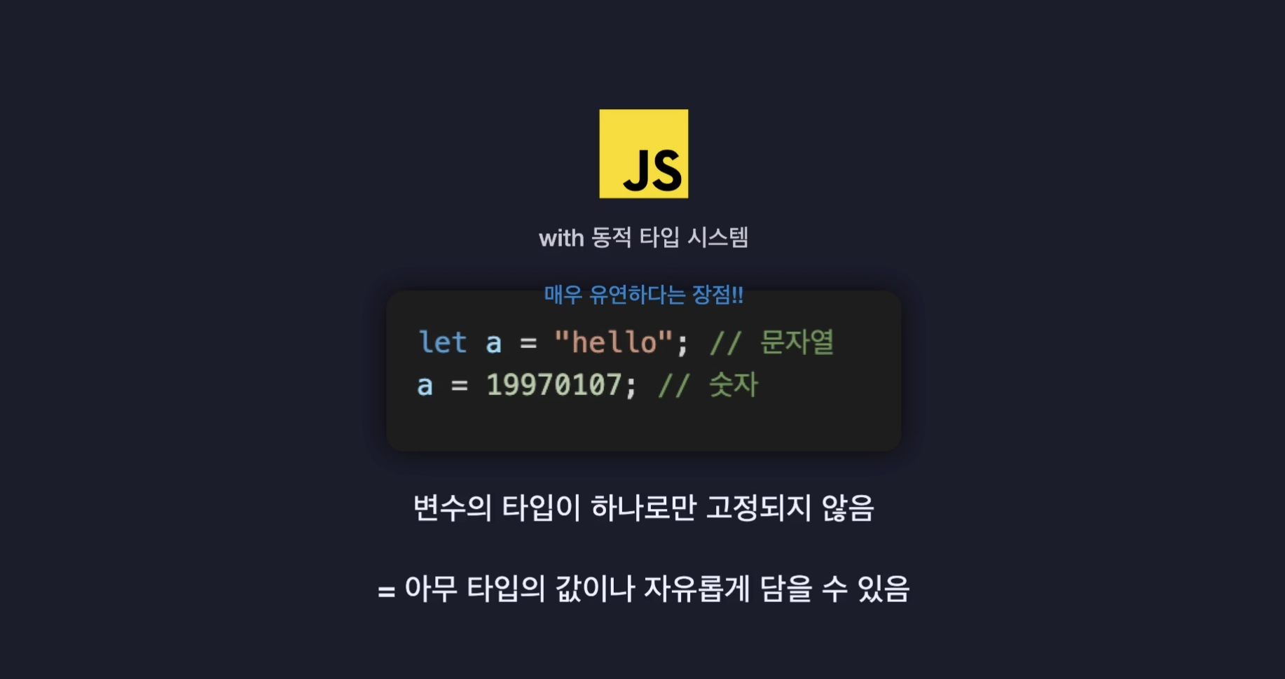 코드가 간단할 경우 크게 문제되지않지만 복잡한 프로그램을 만들 때에는 코드도 따라서 매우 복잡해지고 양도 많아 지게 되면서 오류 발생지를 찾기 힘들 뿐더러 서비스가 제대로 동작되지 않는 위험이 생길 가능성이 높아진다. 유연함과 자유로움이 독이 되는 것이다.