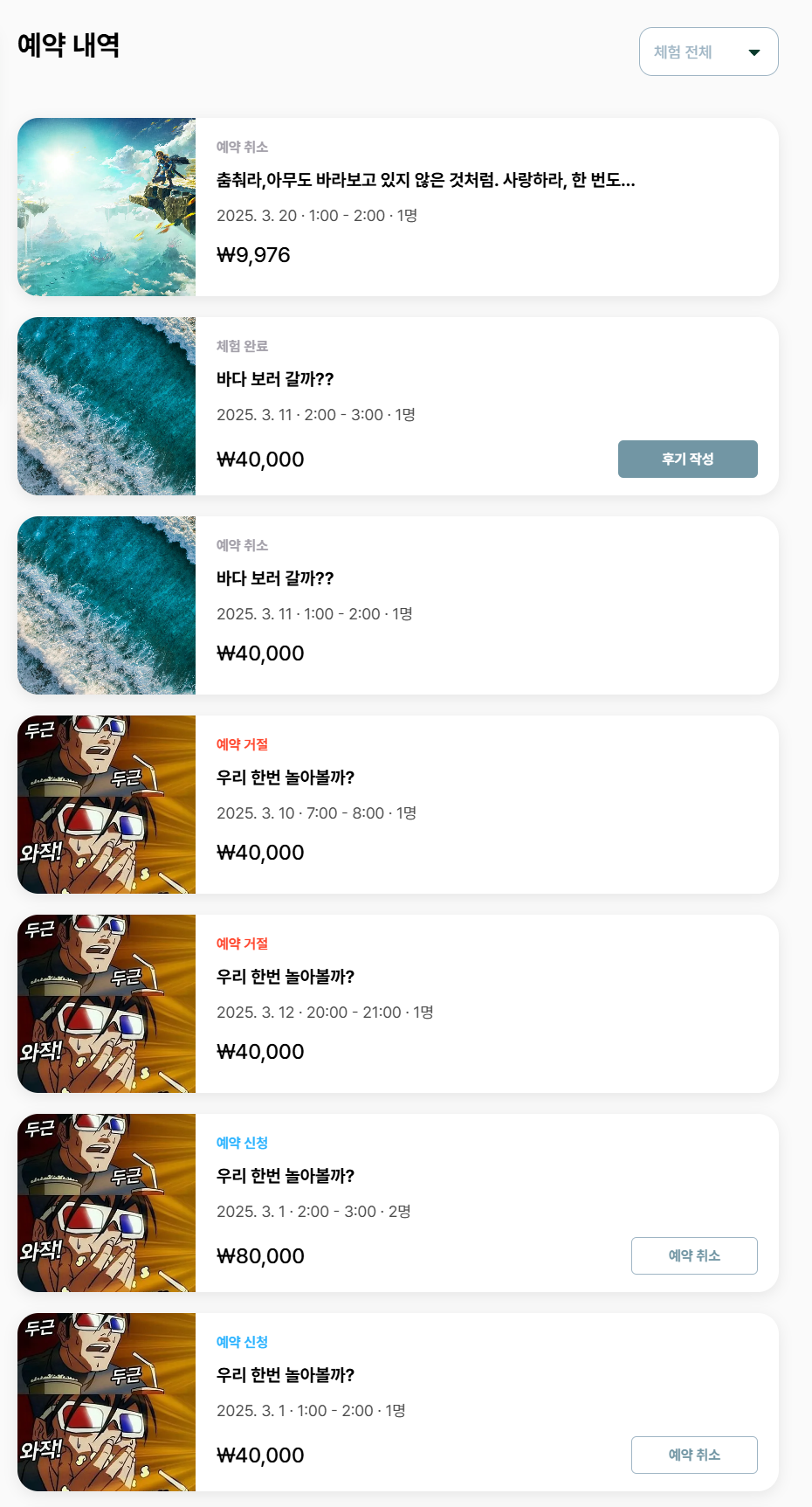 마침 맡은 파트가 두 개의 리스트(체험 관리 & 예약 내역)로 구성되어 있었기 때문에, 각 리스트에 서로 다른 방식 (useInfiniteQuery + useInView / useInfiniteQuery + useIntersectionObserver ) 을 적용해보고 두 트리거 방식 간 실제 구현 난이도와 재사용성 차이를 체험해보고 싶었다.