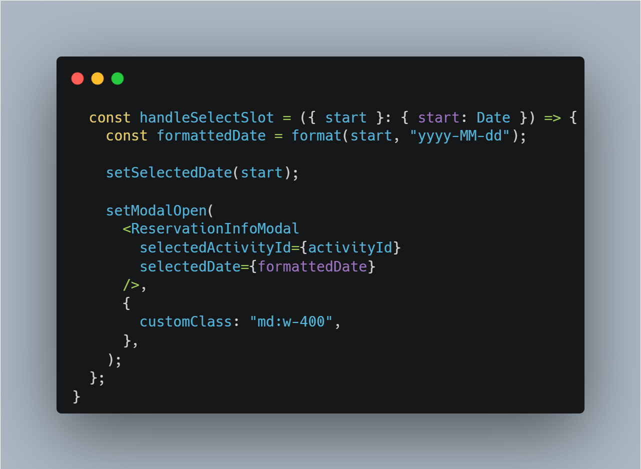 사용자가 날짜를 클릭하면 해당 날짜의 예약 정보를 모달로 보여주는 구조를 구현했다